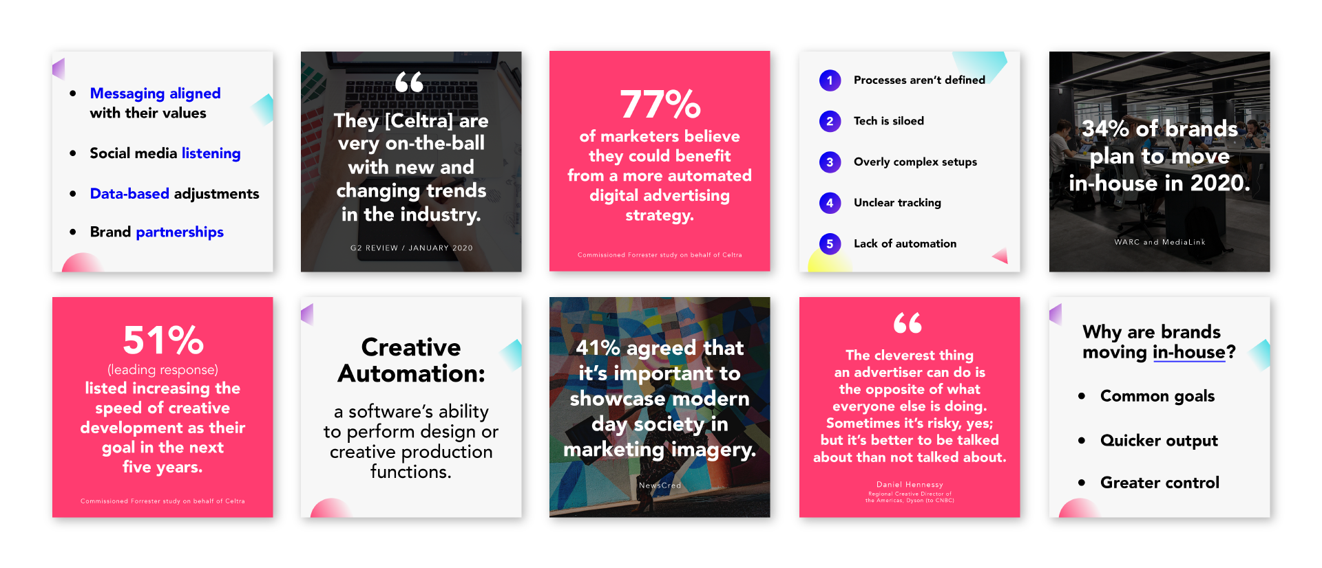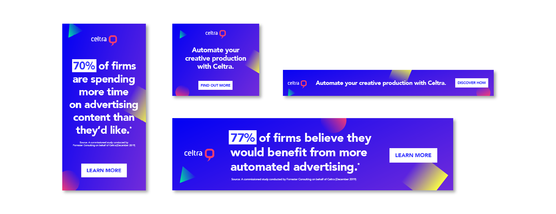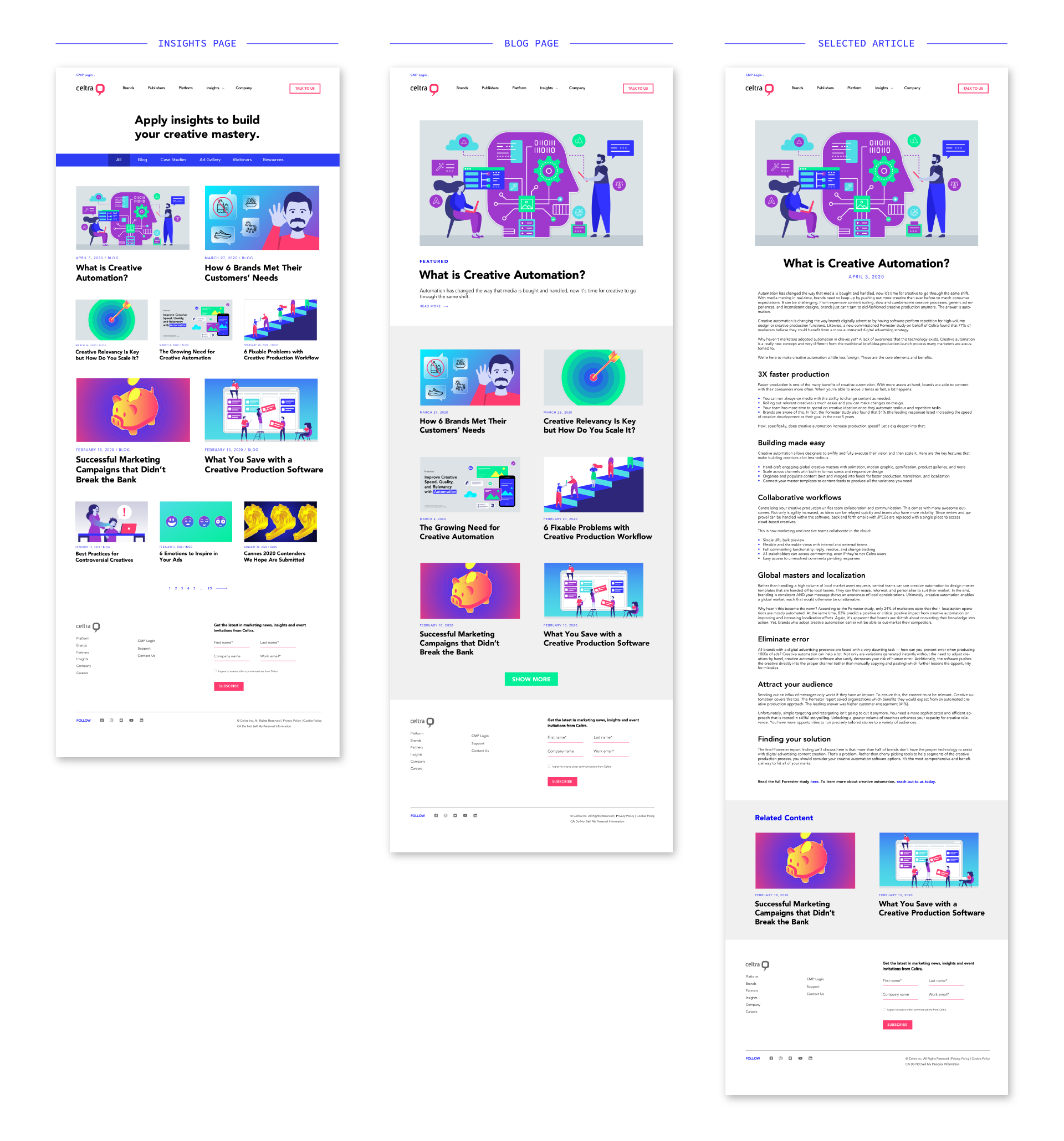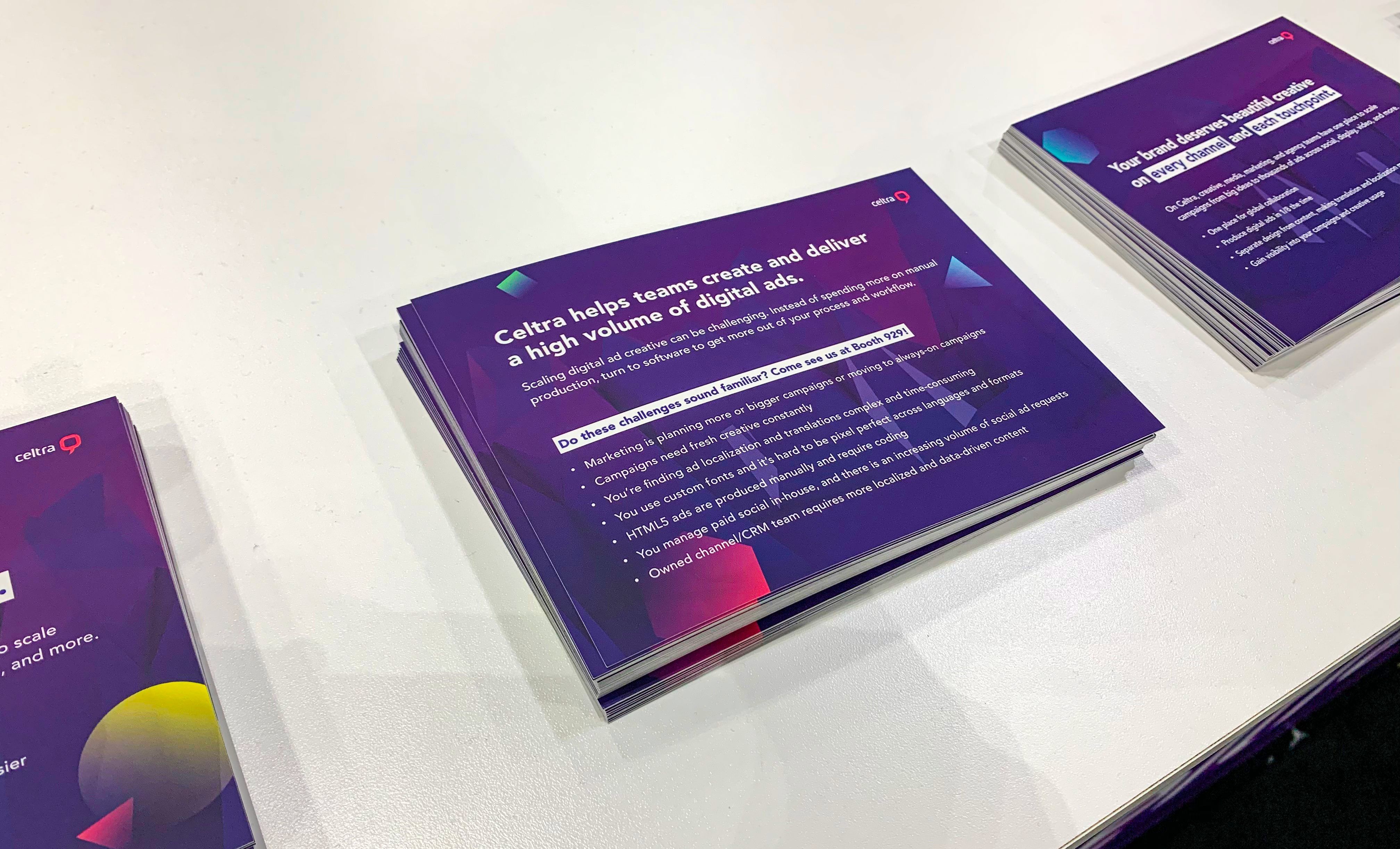 I was the sole designer in the marketing department where I utilized design and art direction skills to execute materials for internal and industry-related events, webinars, web design, print ads & layouts, digital ad campaigns, and additional marketing and sales enablement needs to support Celtra’s growth. I provided creative direction to freelance illustrators, animators, and web designers and was responsible for the company’s visual refresh in late 2019/early 2020 (Celtra has since rebranded post-Covid).