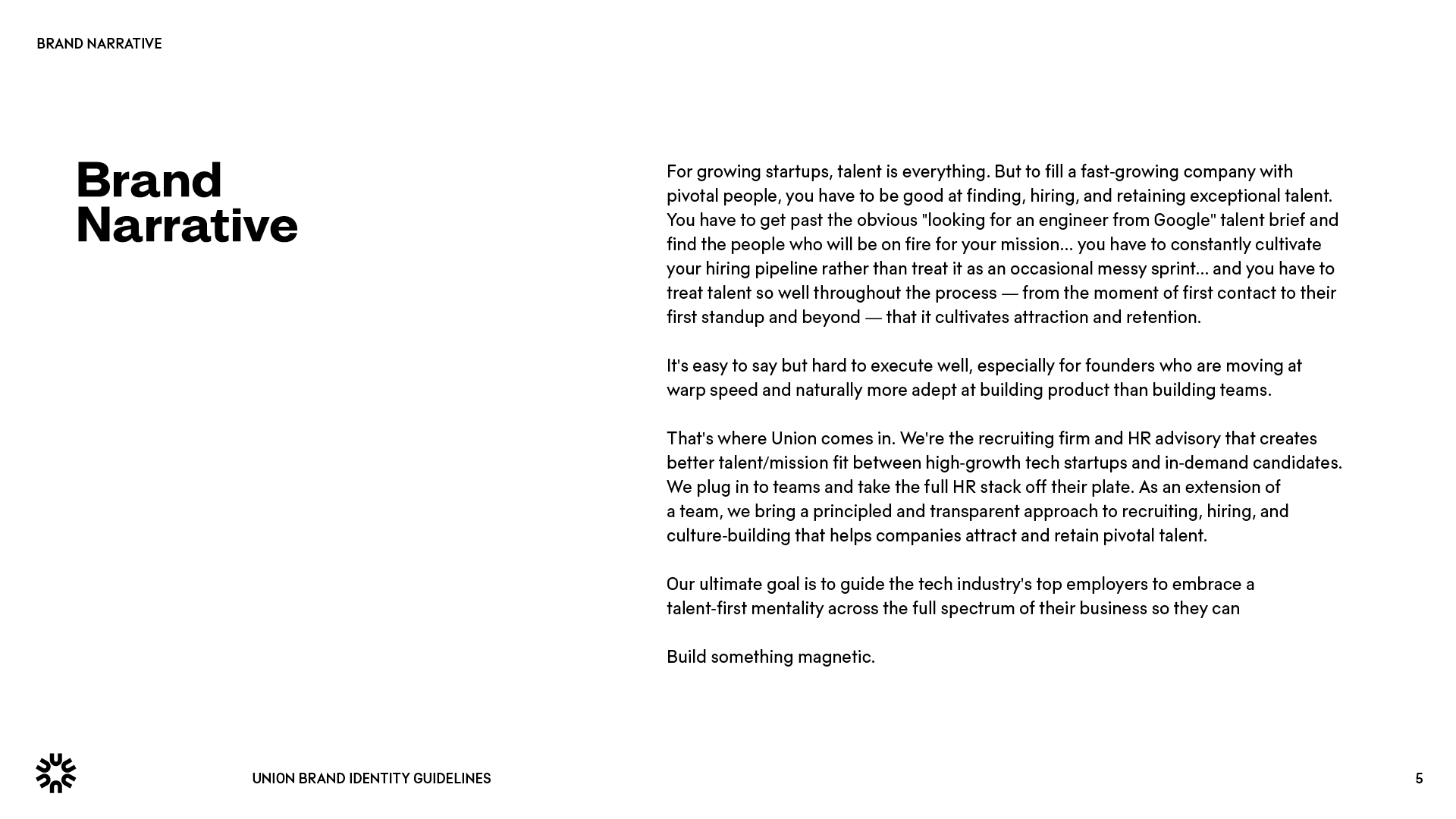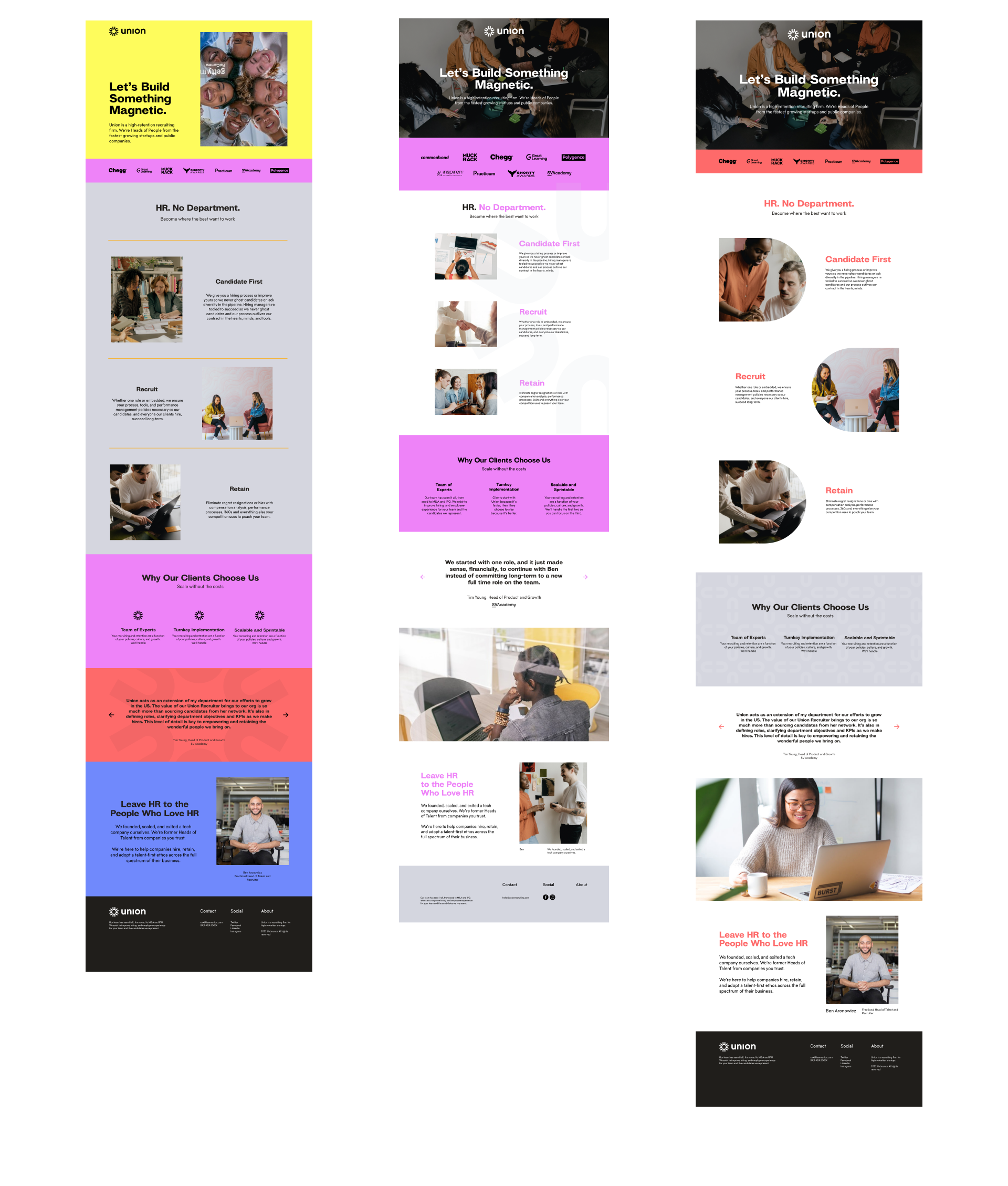 Mutiny Branding was tasked with creating a landing page that detailed Union's recruiting process while also integrating their new vibrant and bold brand identity. I provided design concepts and creative direction while working directly with a contracted developer to execute the project from start to finish.